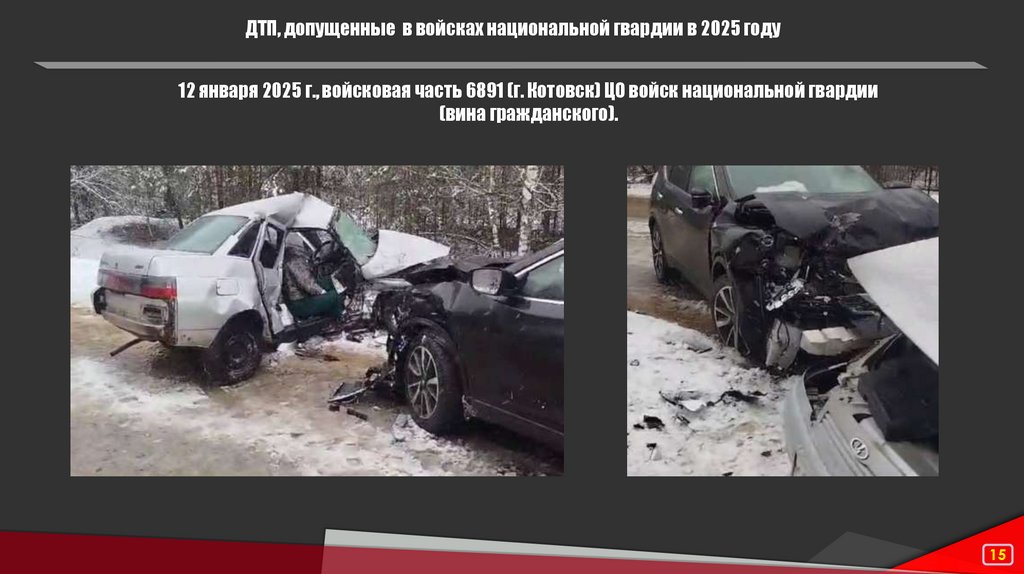ДТП, допущенные в войсках национальной гвардии в 2025 году12 января 2025 г., войсковая часть 6891 (г. Котовск) ЦО войск национальной гвардии