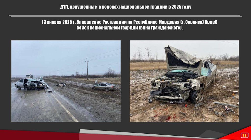 ДТП, допущенные в войсках национальной гвардии в 2025 году13 января 2025 г., Управление Росгвардии по Республике Мордовия (г. Саранск) ПривО