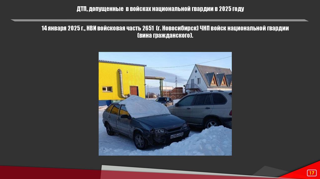 ДТП, допущенные в войсках национальной гвардии в 2025 году14 января 2025 г., НВИ войсковая часть 2651 (г. Новосибирск) ЧНП войск национальной гвардии