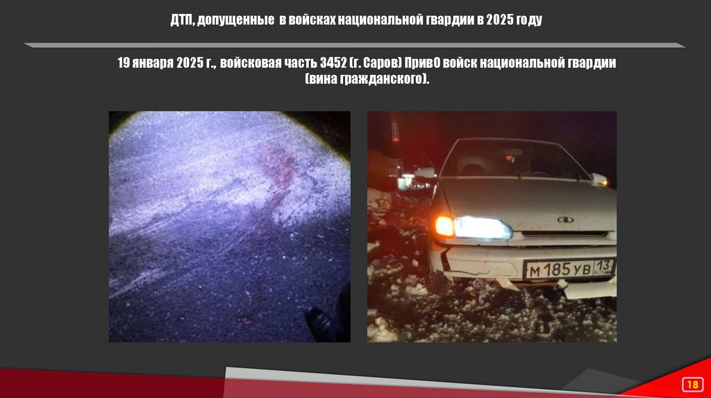 ДТП, допущенные в войсках национальной гвардии в 2025 году19 января 2025 г., войсковая часть 3452 (г. Саров) ПривО войск национальной гвардии