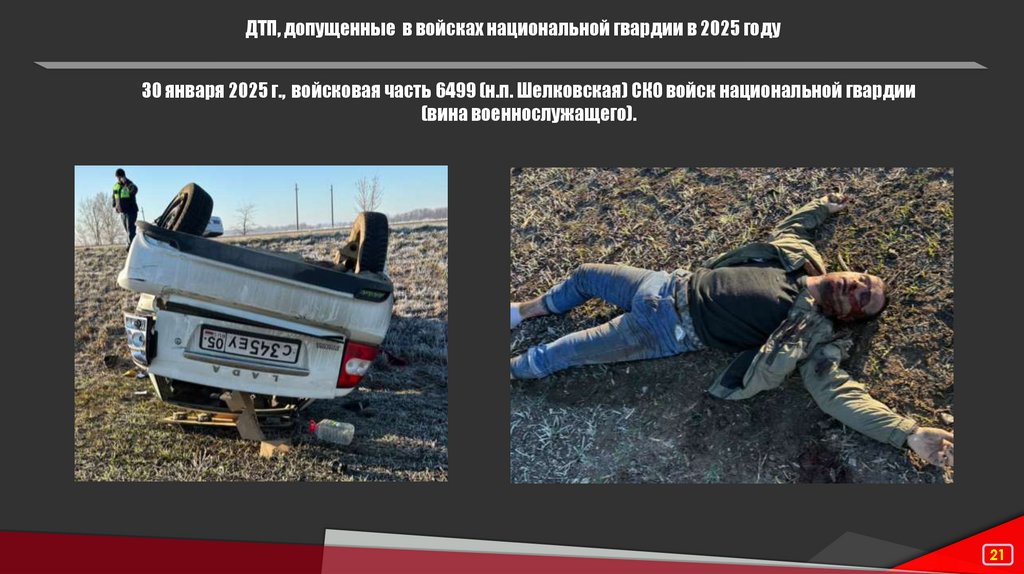 ДТП, допущенные в войсках национальной гвардии в 2025 году30 января 2025 г., войсковая часть 6499 (н.п. Шелковская) СКО войск национальной гвардии