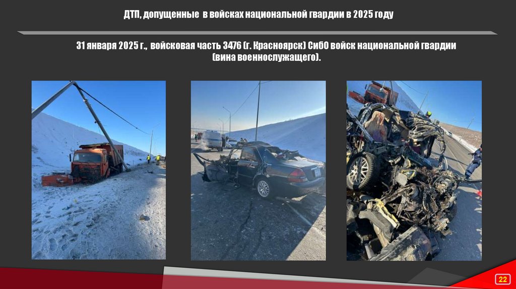 ДТП, допущенные в войсках национальной гвардии в 2025 году31 января 2025 г., войсковая часть 3476 (г. Красноярск) СибО войск национальной гвардии