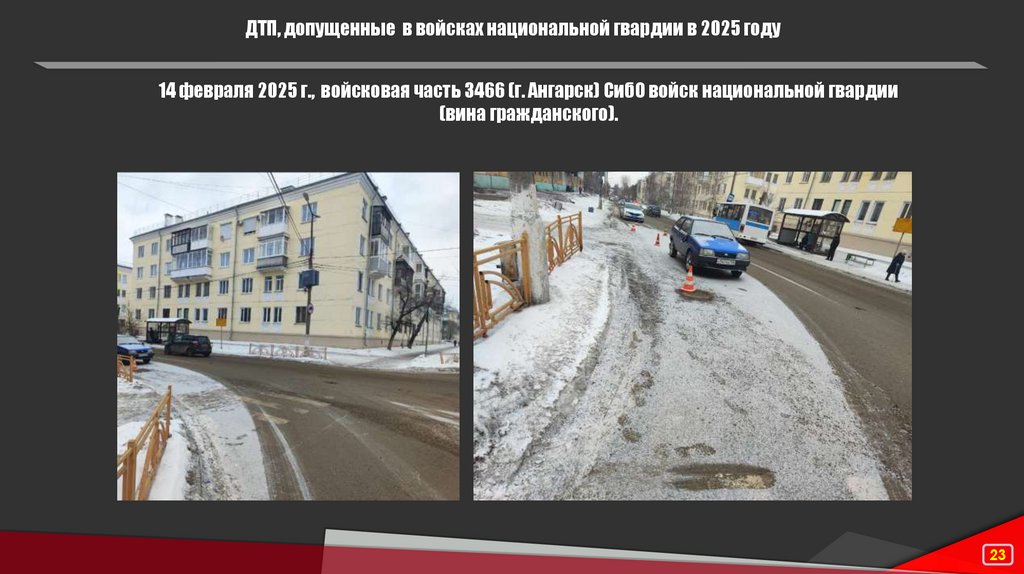 ДТП, допущенные в войсках национальной гвардии в 2025 году14 февраля 2025 г., войсковая часть 3466 (г. Ангарск) СибО войск национальной гвардии