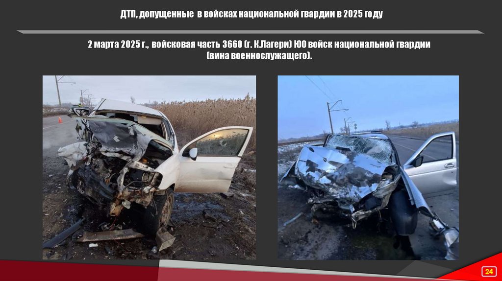 ДТП, допущенные в войсках национальной гвардии в 2025 году2 марта 2025 г., войсковая часть 3660 (г. К.Лагери) ЮО войск национальной гвардии