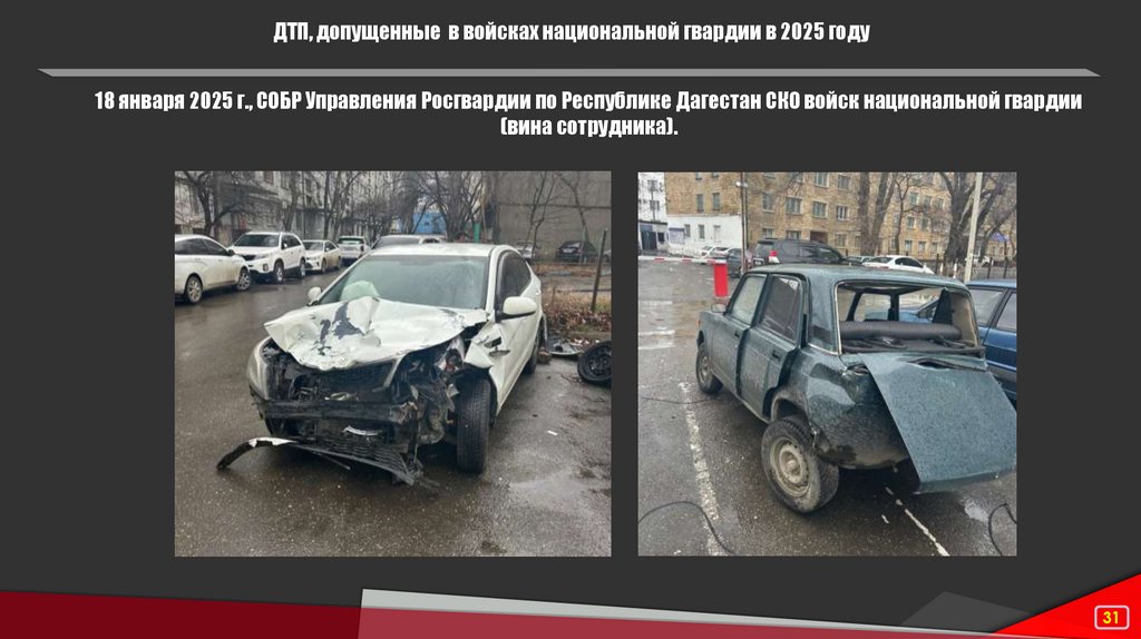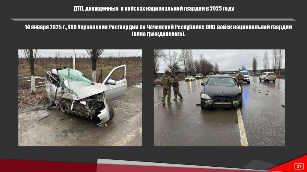 ДТП, допущенные в войсках национальной гвардии в 2025 году5 января 2025 г., войсковая часть 2671 (н.п. Ханкала) СКО войск национальной гвардии