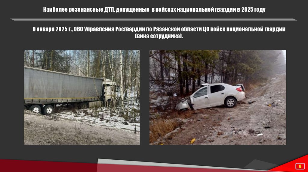 Наиболее резонансные ДТП, допущенные в войсках национальной гвардии в 2025 году9 января 2025 г., ОВО Управления Росгвардии по Рязанской области ЦО войск национальной гвардии