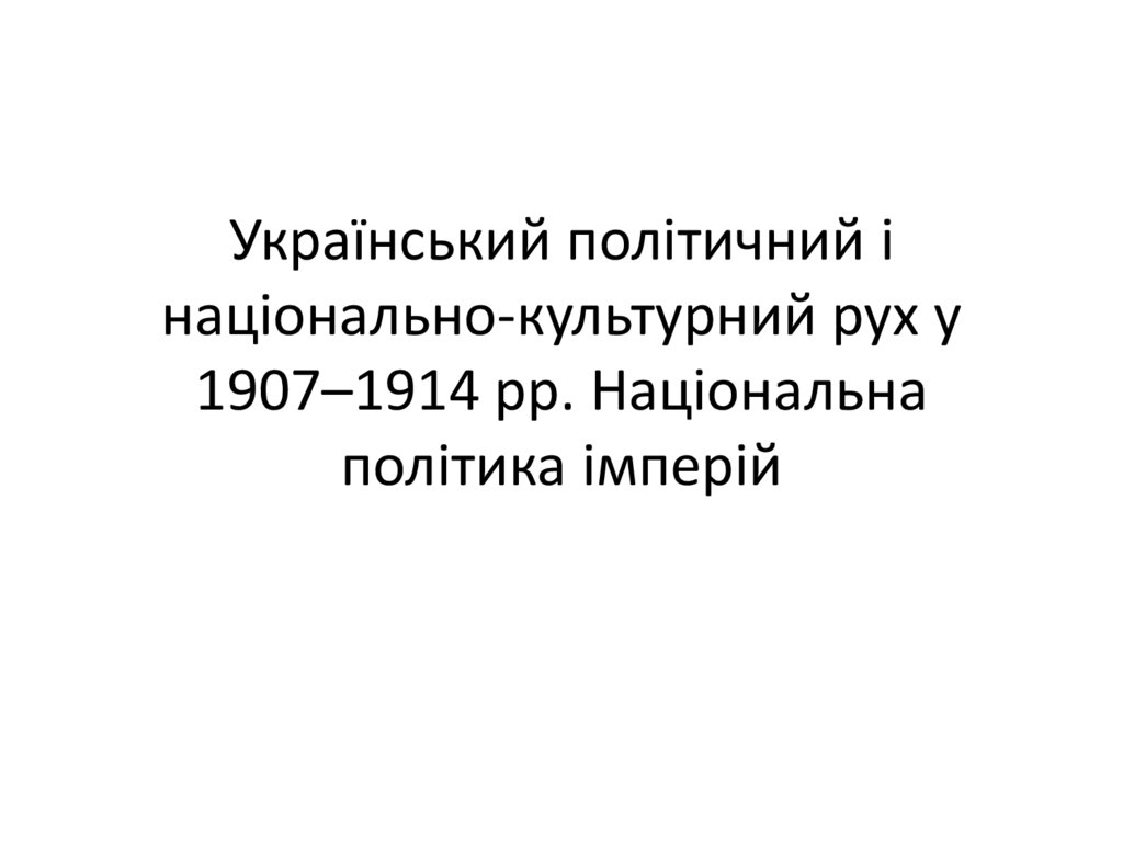 1. Український політичний і національно-культурний рух у 1907–1914 рр. Національна політика імперій