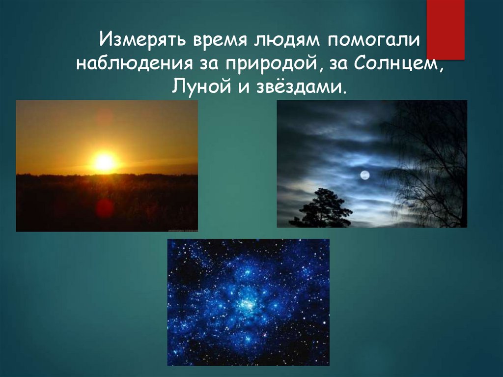 Измерять время людям помогалинаблюдения за природой, за Солнцем,