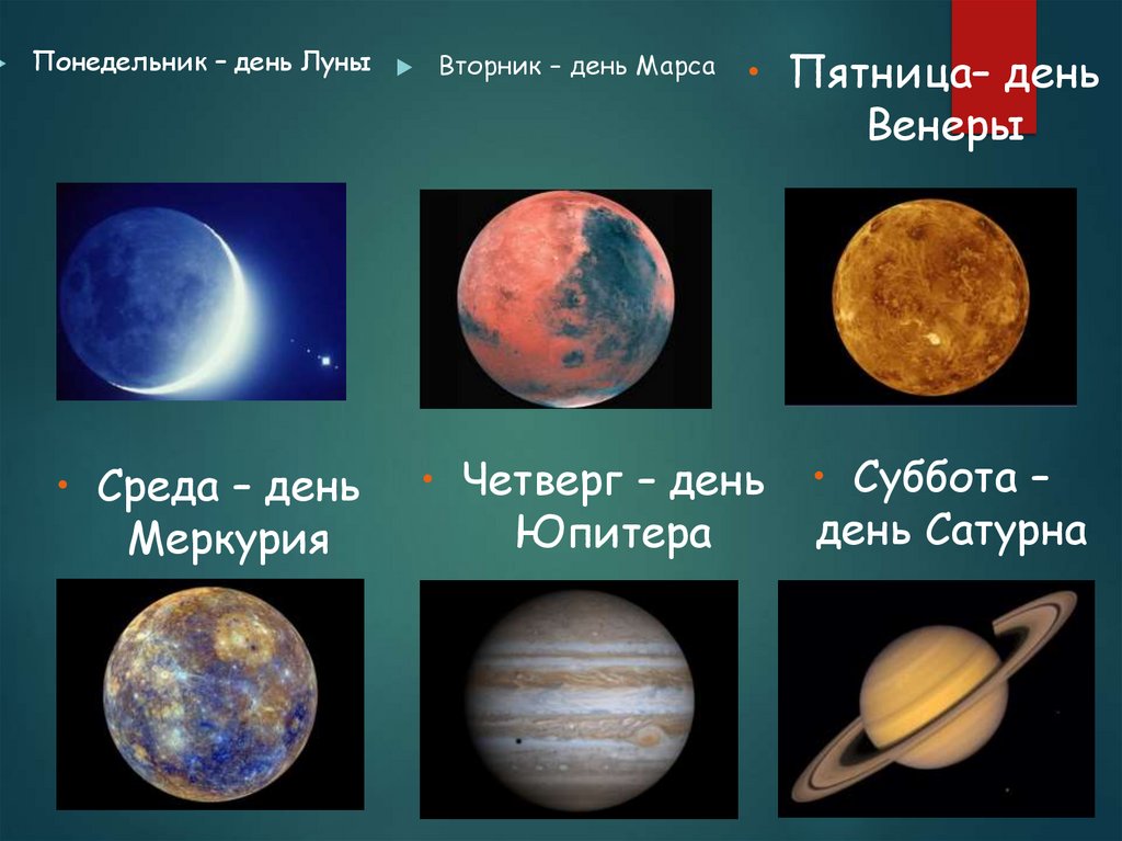 числу видимых небесных тел (Меркурий, Венера, Марс, Юпитер,
