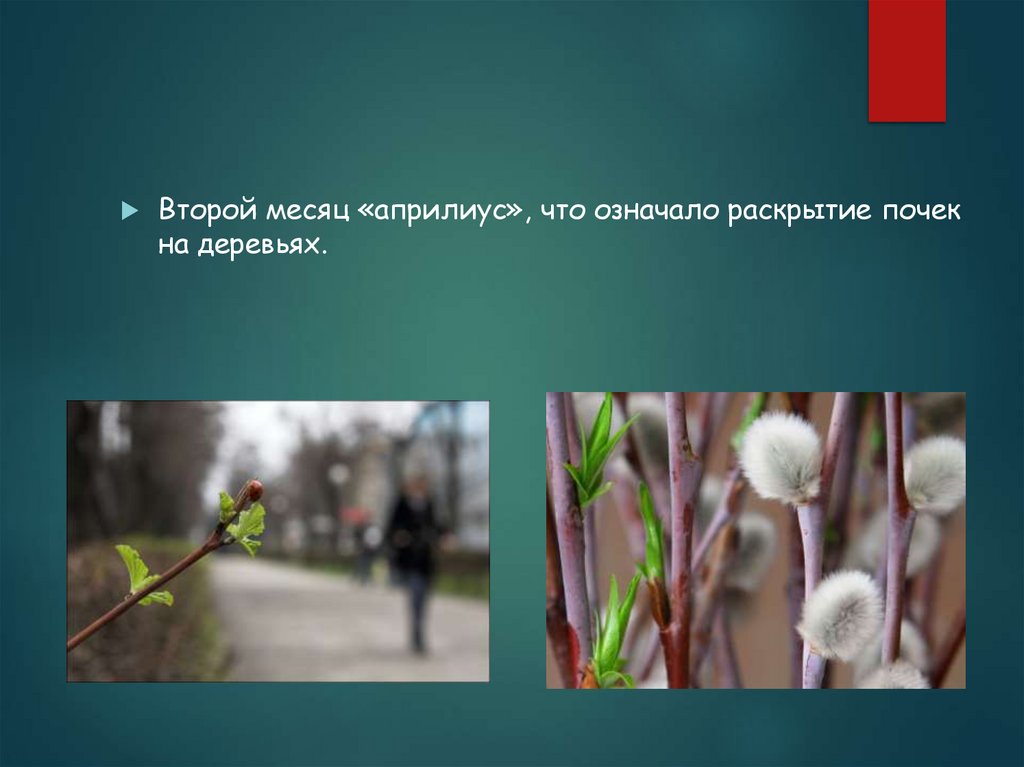 Второй месяц «априлиус», что означало раскрытие почекна деревьях.