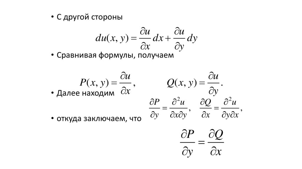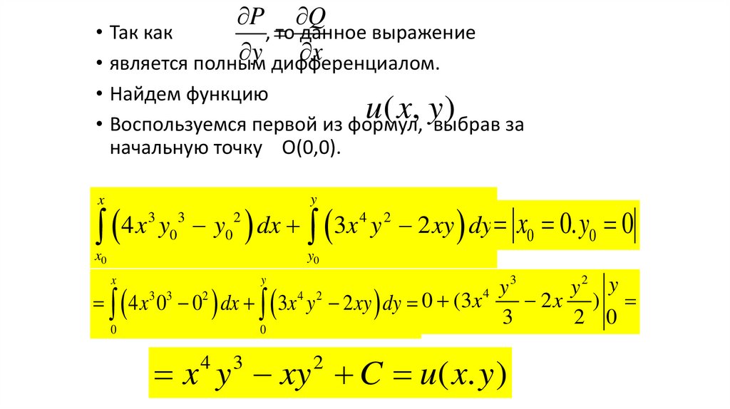 • Проверить является ли выражение полным дифференциалом иесли да, то восстановить функцию