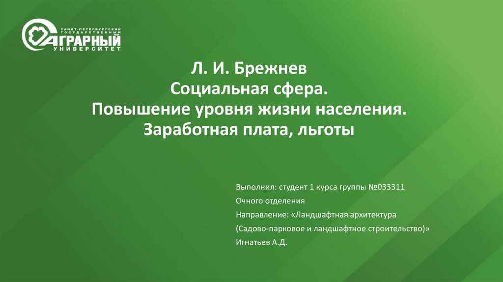 1. Л. И. Брежнев Социальная сфера. Повышение уровня жизни населения. Заработная плата, льготы