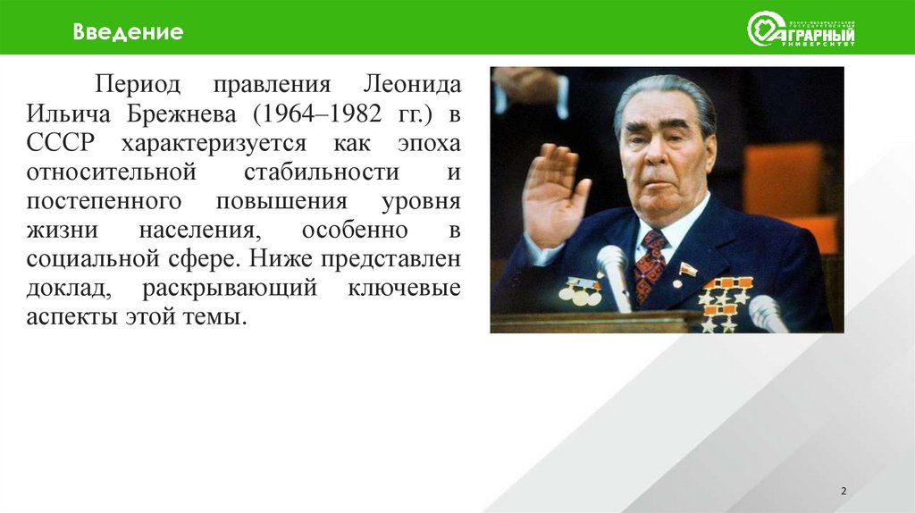 Таким образом, период правления Леонида ИльичаБрежнева стал временем значительного улучшения социальной
