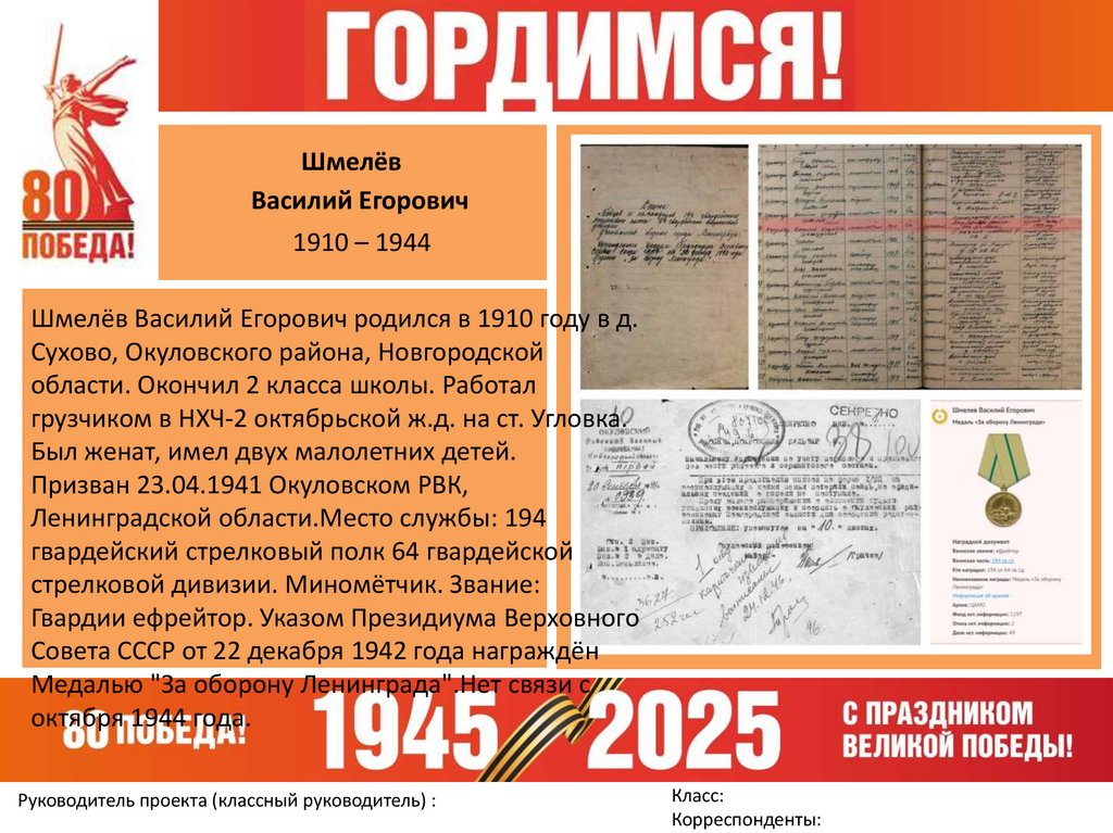 Шмелëв Василий Егорович родился в 1910 году в д.