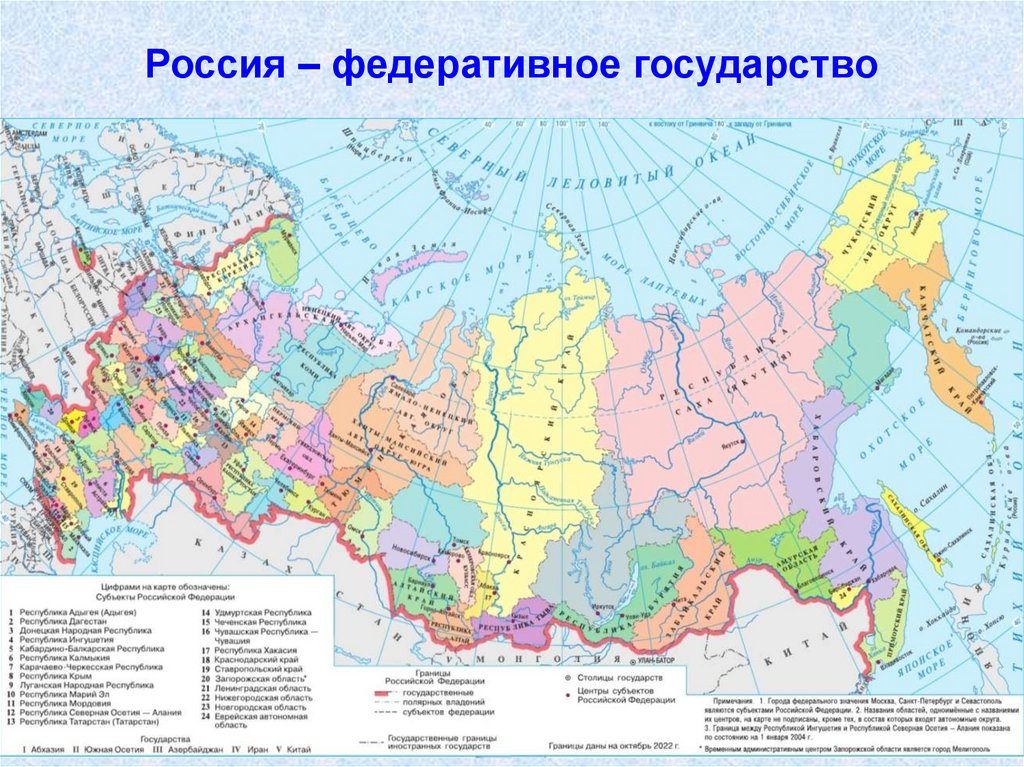 Россия – федеративное государствоПонятие федеративного государства (федерации) означает,