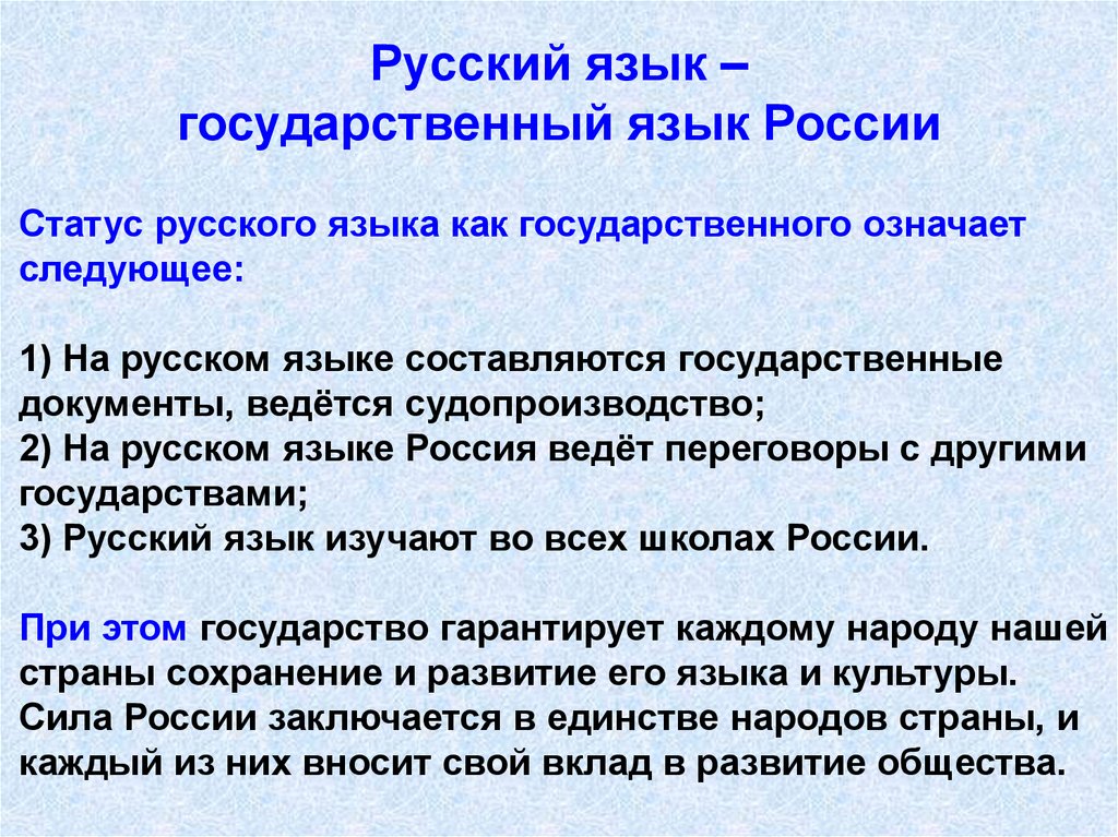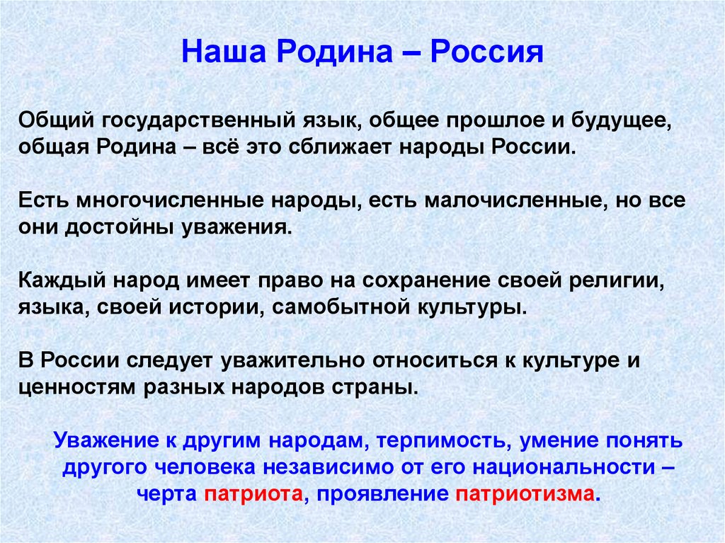Наша Родина – РоссияОбщий государственный язык, общее прошлое и будущее,