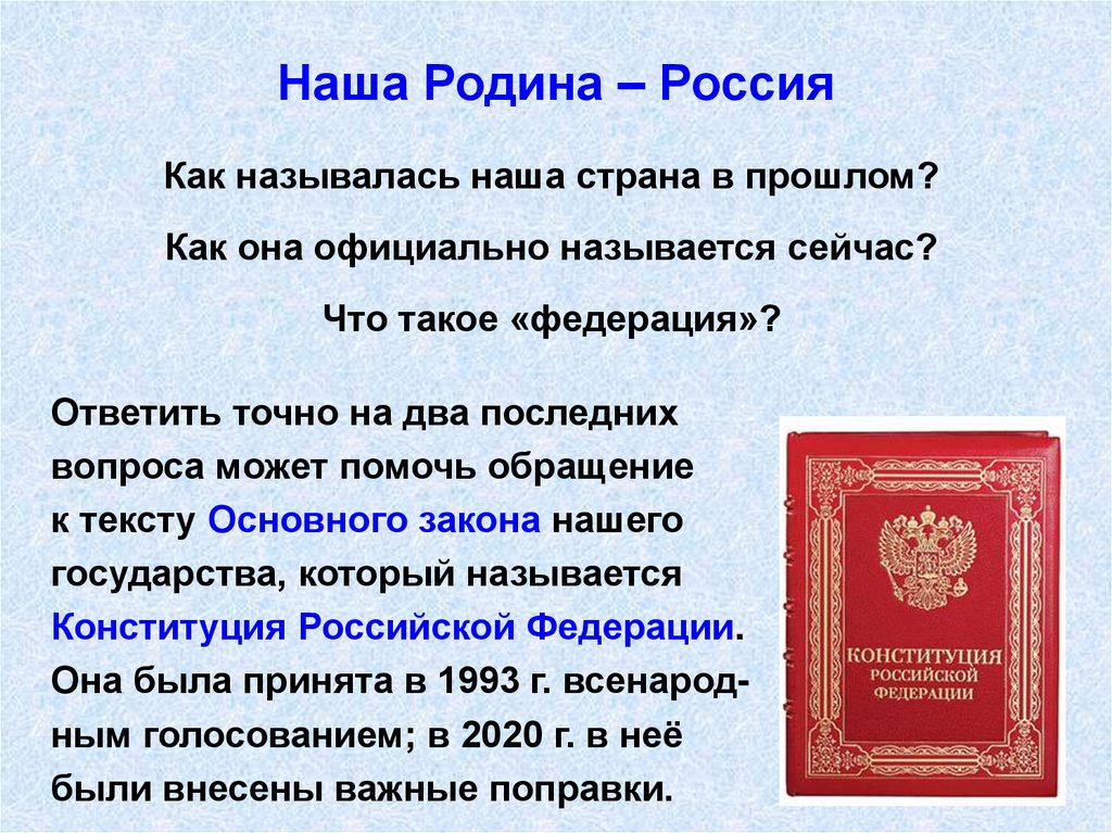 Наша Родина – РоссияКак называлась наша страна в прошлом?