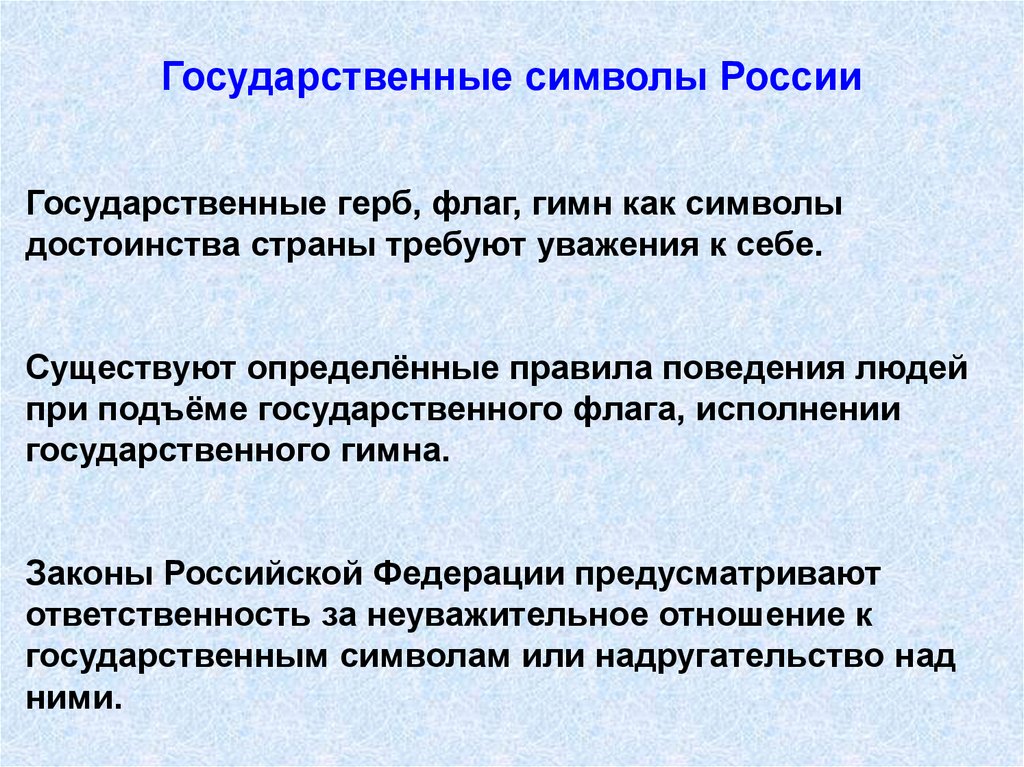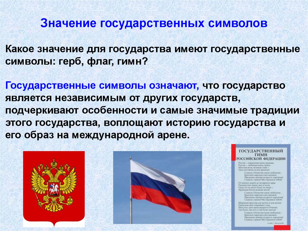 Государственные символы РоссииГосударственные герб, флаг, гимн как символы