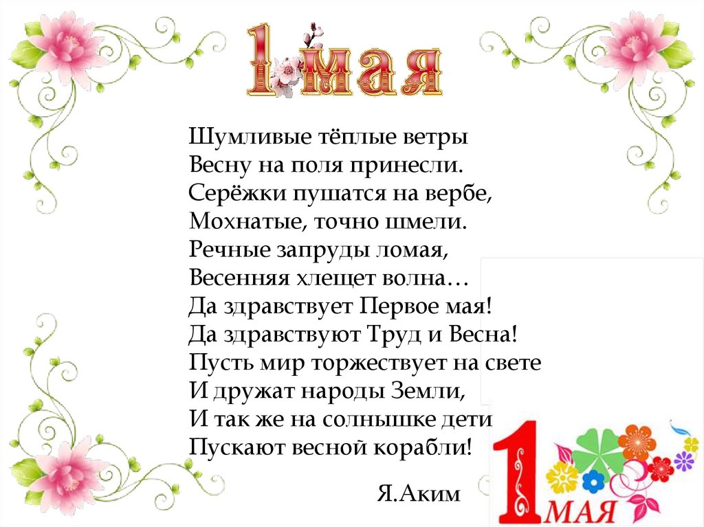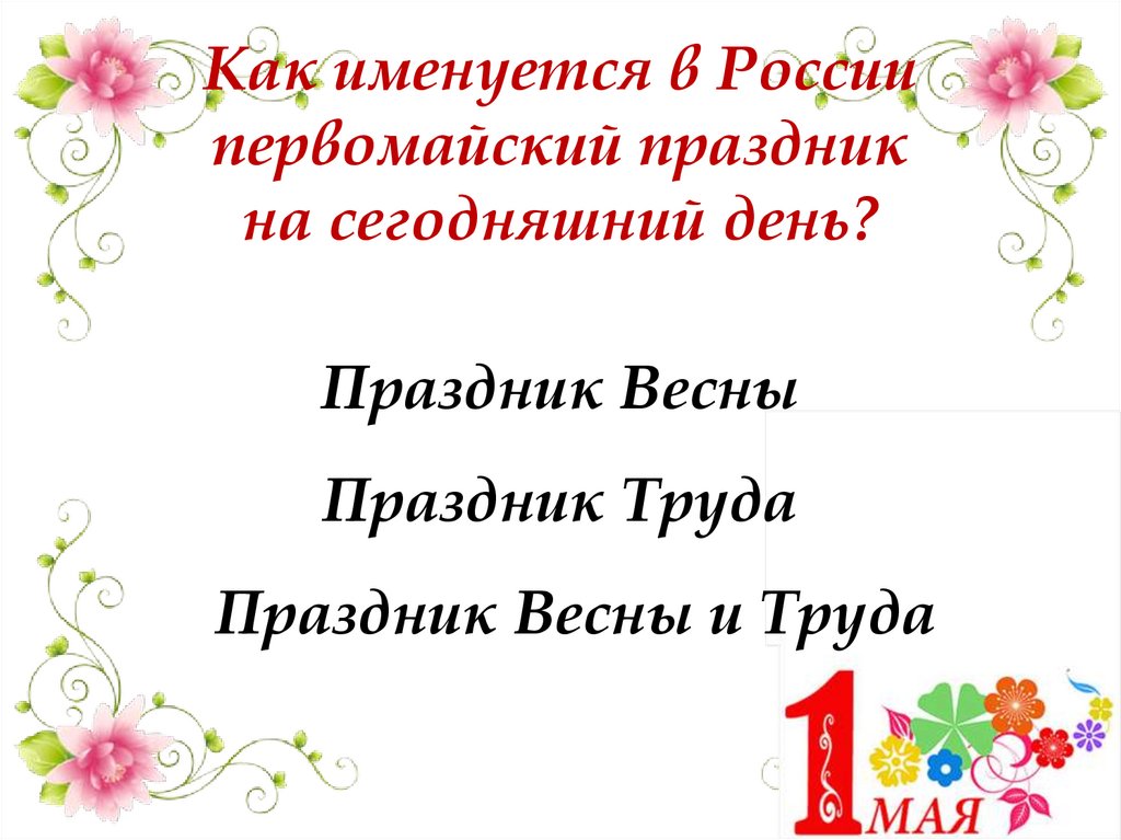 Праздник Первомай именуетсякак праздник Весны и Труда.