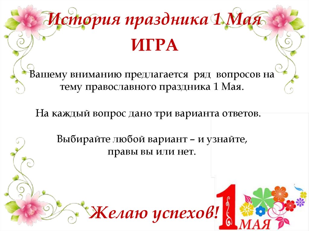 История праздника 1 МаяИГРА