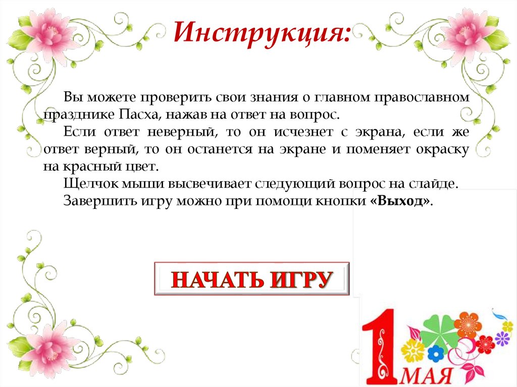 празднике Пасха, нажав на ответ на вопрос.