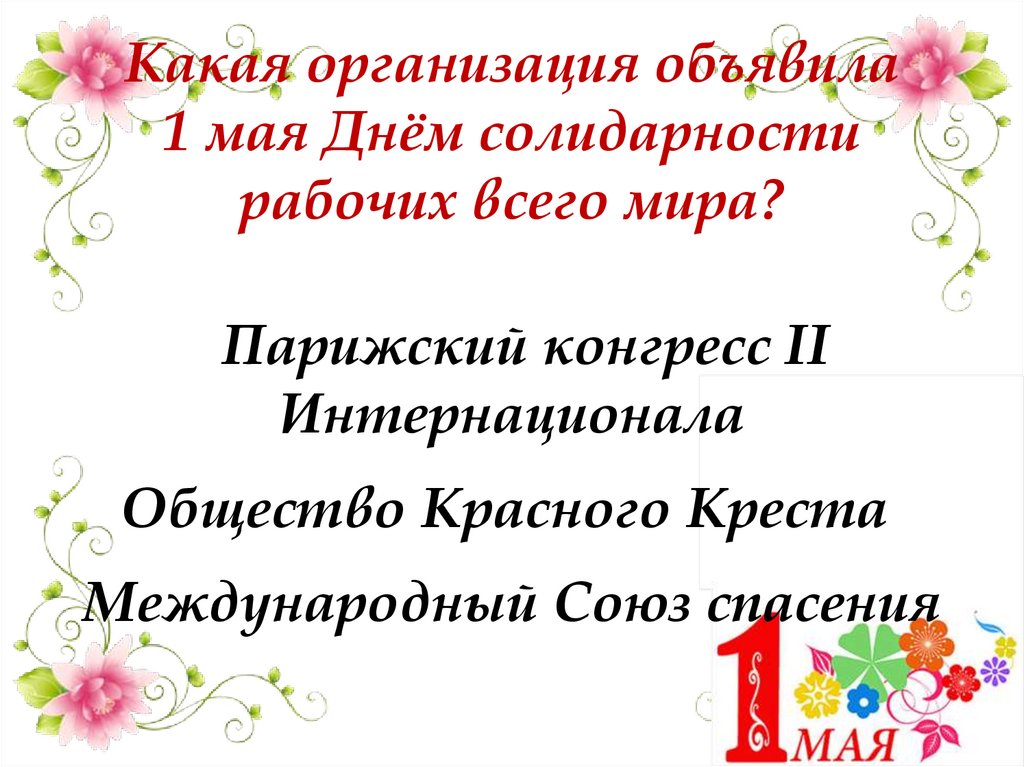 Какая организация объявила1 мая Днём солидарности