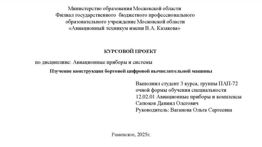Московской области«Авиационный техникум имени В.А. Казакова»
