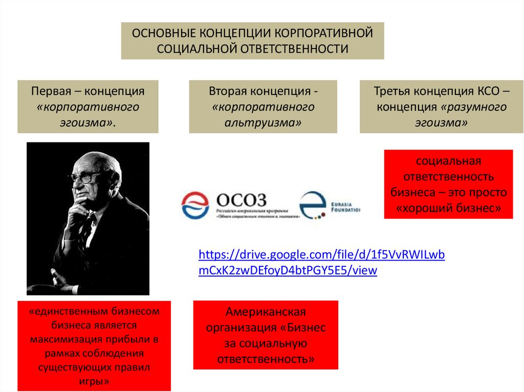 ОСНОВНЫЕ КОНЦЕПЦИИ КОРПОРАТИВНОЙСОЦИАЛЬНОЙ ОТВЕТСТВЕННОСТИ