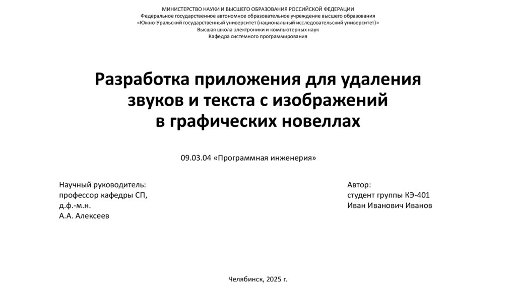 ЮУрГУ. Челябинск, ЮУрГУ, 2024 г. (принята к печати, индексируется в РИНЦ)