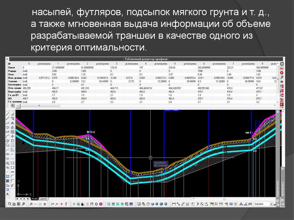 насыпей, футляров, подсыпок мягкого грунта и т. д.,а также мгновенная выдача информации об объеме