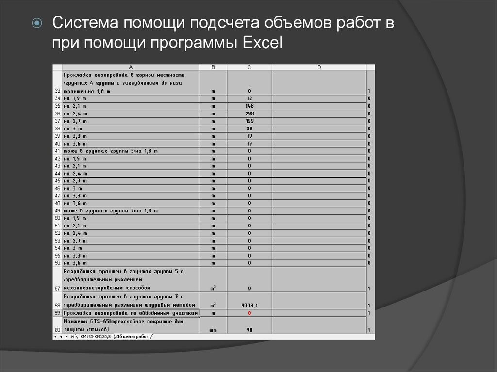 Система помощи подсчета объемов работ впри помощи программы Excel