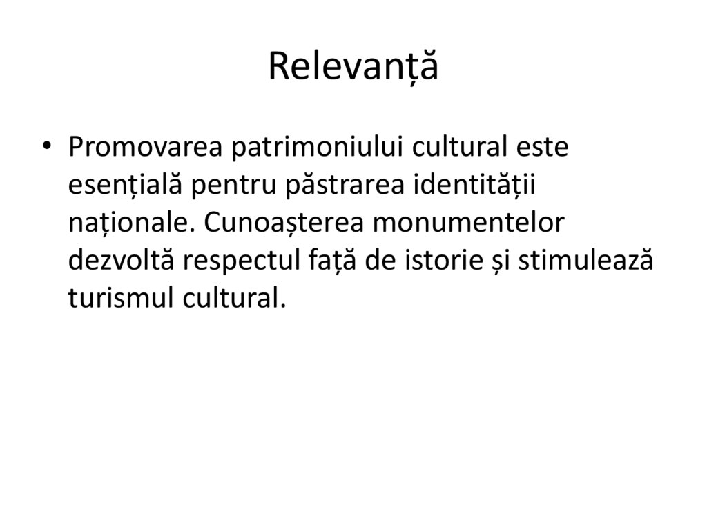 Relevanță• Promovarea patrimoniului cultural este