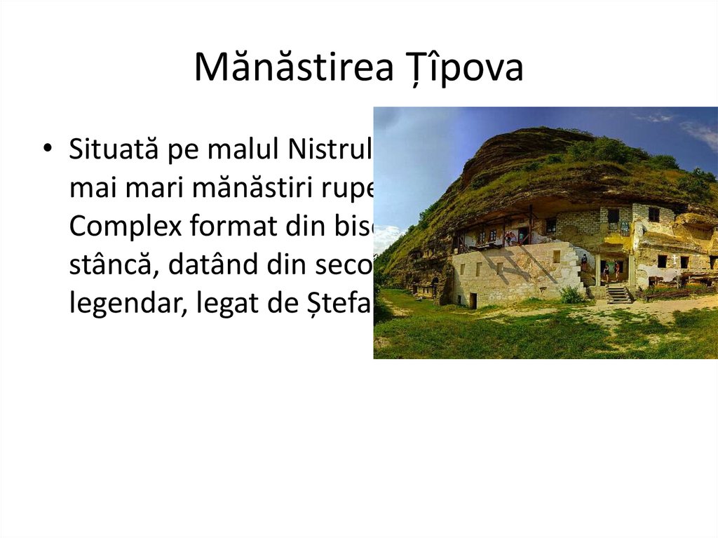 Mănăstirea Țîpova• Situată pe malul Nistrului, este una dintre cele