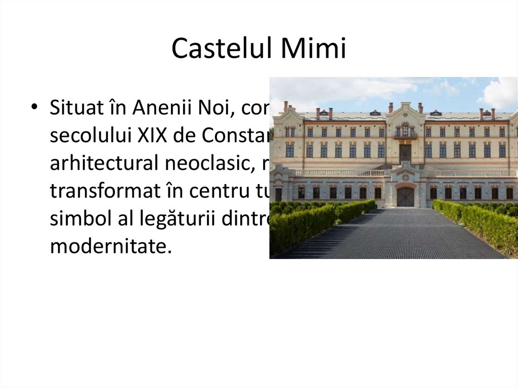 Castelul Mimi• Situat în Anenii Noi, construit la sfârșitul