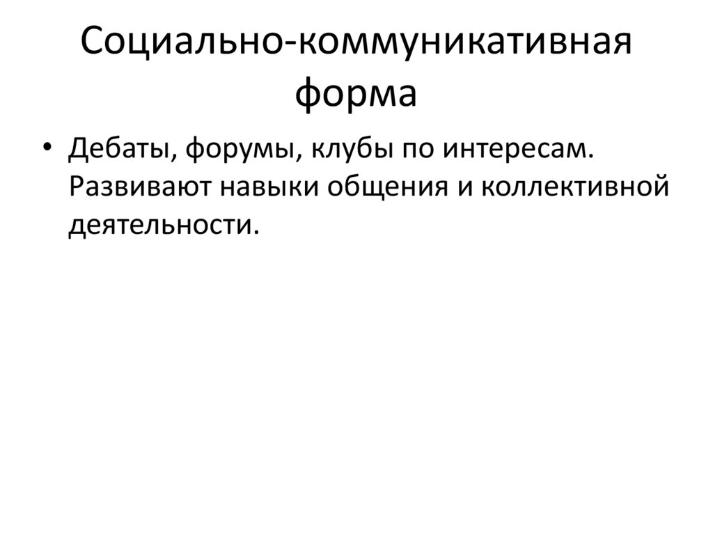 Культурно-досуговая форма• Включает концерты, театры, фестивали,