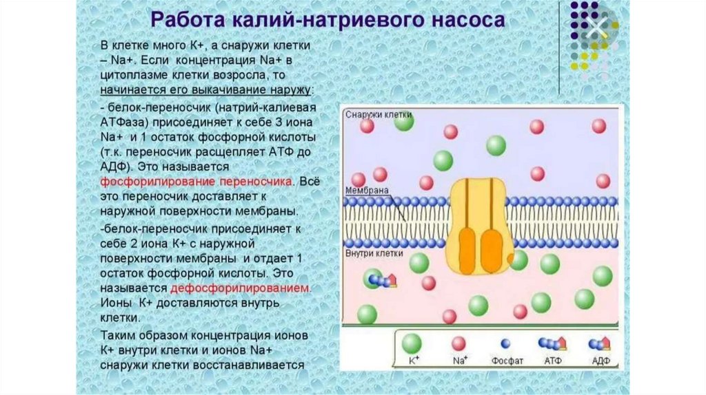 мембране существует специальный натрий-калиевый насос, который поддерживает