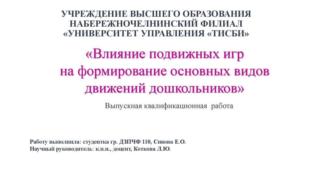 Научный руководитель: к.п.н., доцент, Коткова Л.Ю.