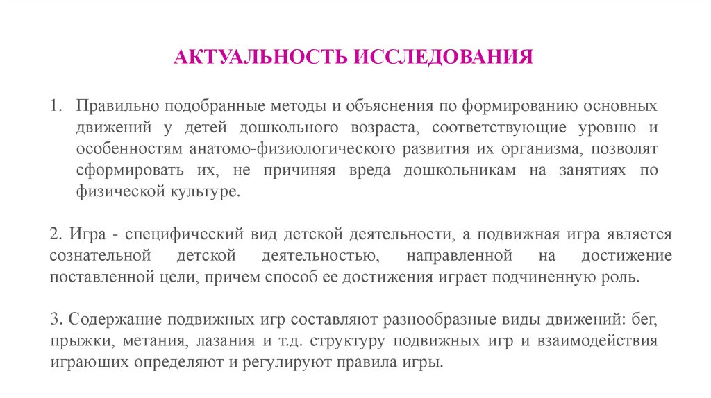АКТУАЛЬНОСТЬ ИССЛЕДОВАНИЯ1. Правильно подобранные методы и объяснения по формированию основных
