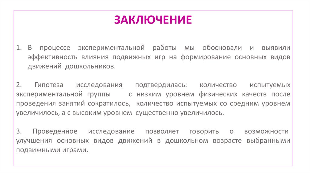 ЗАКЛЮЧЕНИЕ1. В процессе экспериментальной работы мы обосновали и выявили