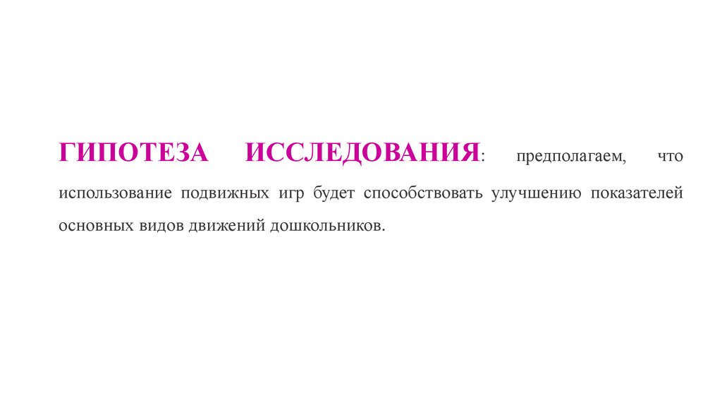 ПРЕДМЕТ ИССЛЕДОВАНИЯ: методика использования подвижных игр с