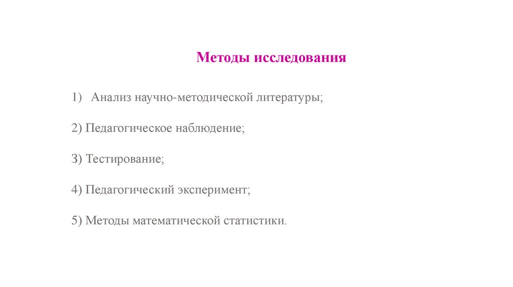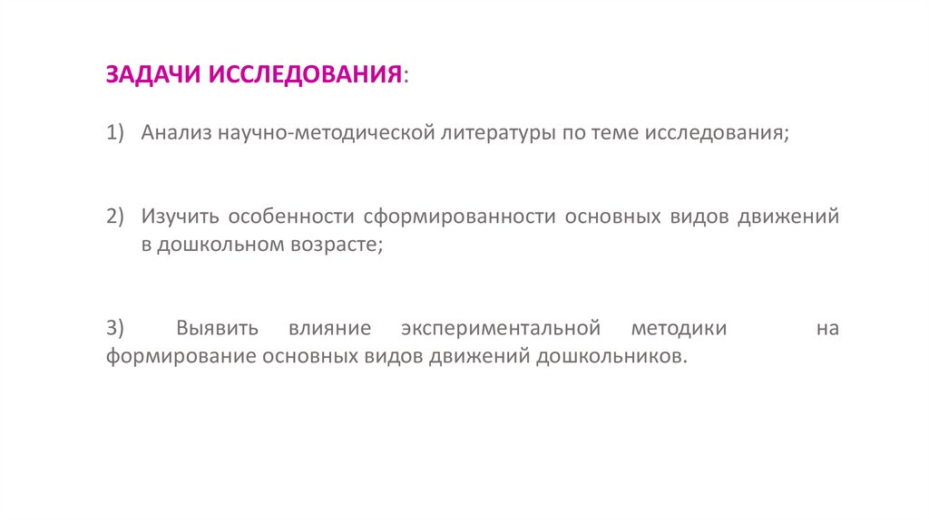 ЗАДАЧИ ИССЛЕДОВАНИЯ:1) Анализ научно-методической литературы по теме исследования;