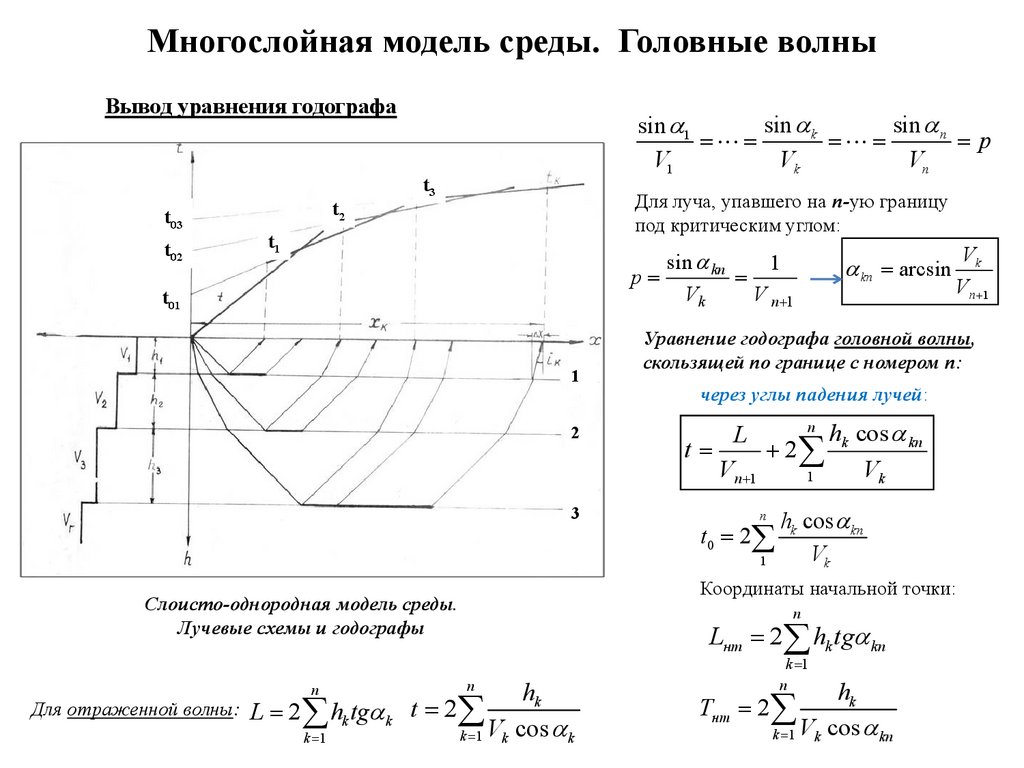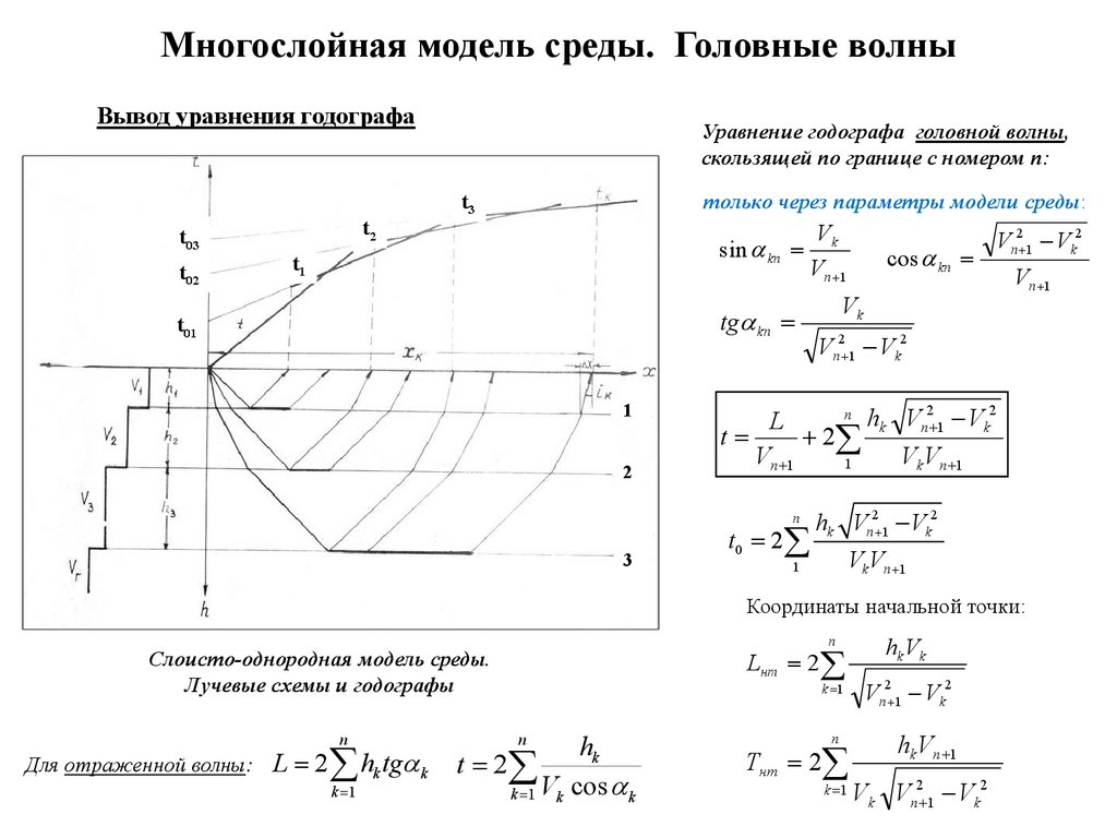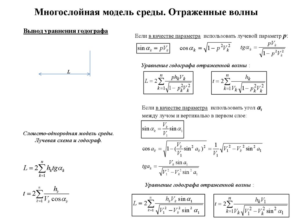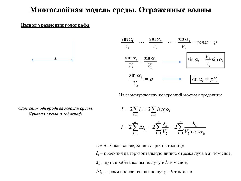 Многослойная модель среды. Отраженные волныВывод уравнения годографа
