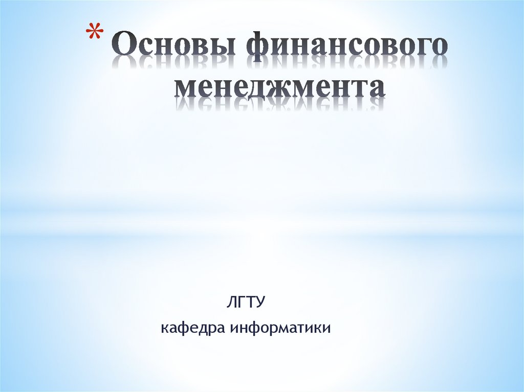 Основы финансового менеджмента
