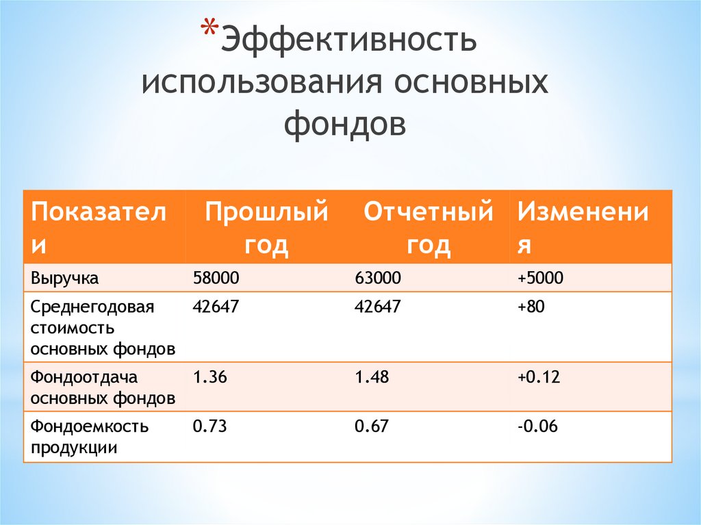 *Эффективностьиспользования основных