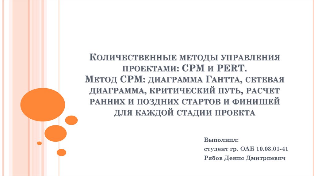 КОЛИЧЕСТВЕННЫЕ МЕТОДЫ УПРАВЛЕНИЯПРОЕКТАМИ: CPM И PERT.
