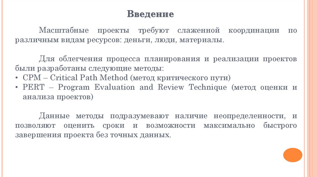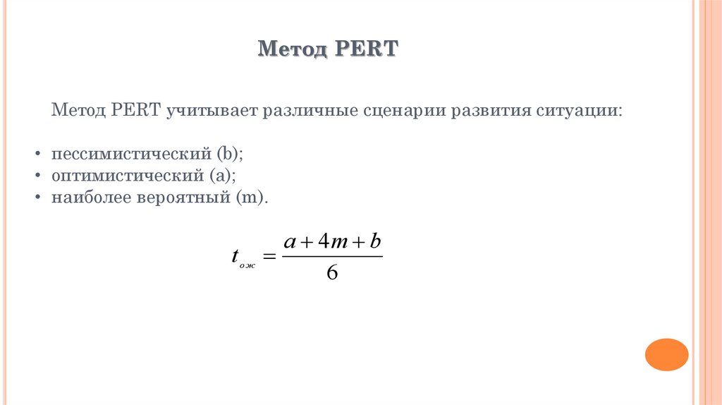 • PERT – Program Evaluation and Review Technique (метод оценки и