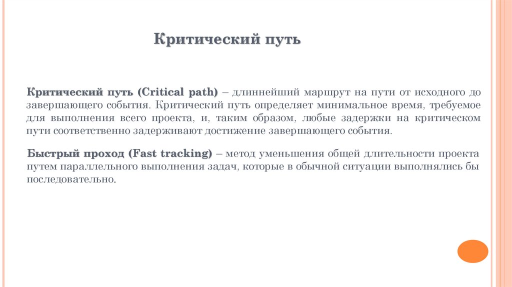 Критический путьКритический путь (Сritical path) – длиннейший маршрут на пути от исходного до