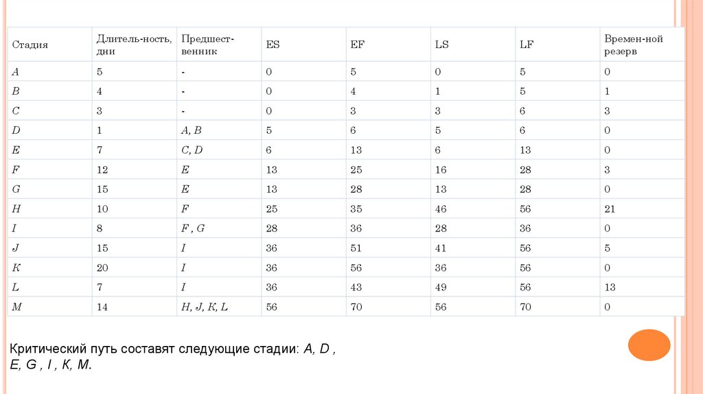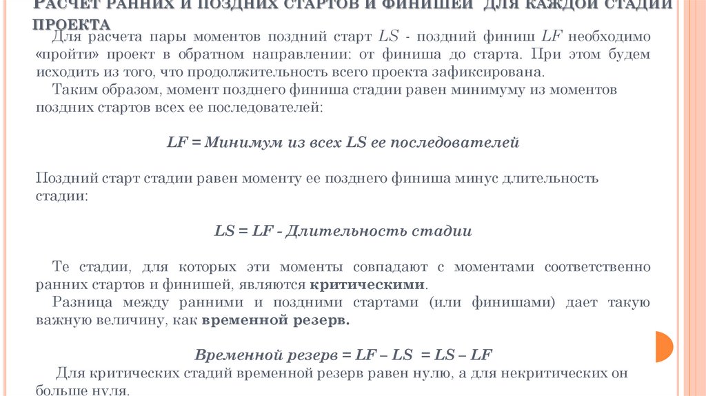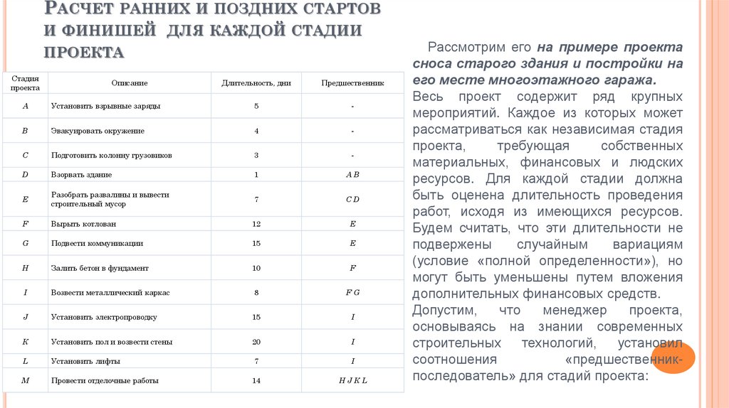 пропорциональны длительности стадий), руководствуясь принципом: начинать так рано, как только