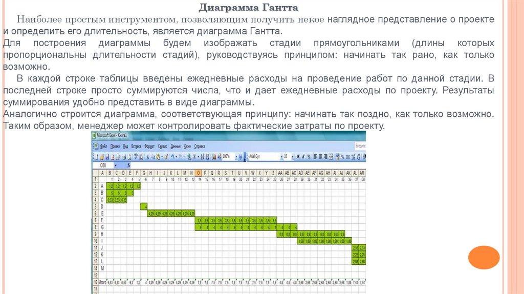 Диаграмма ГанттаНаиболее простым инструментом, позволяющим получить некое наглядное представление о проекте
