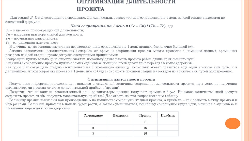 ОПТИМИЗАЦИЯ ДЛИТЕЛЬНОСТИПРОЕКТА